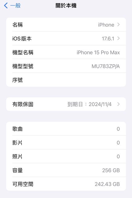 欲售物品:iPhone 15 Pro Max 256GB 白色鈦