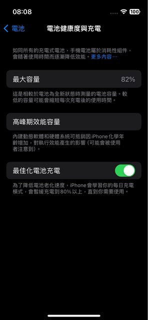 iOS 版本17.6.1,電池健康度82%