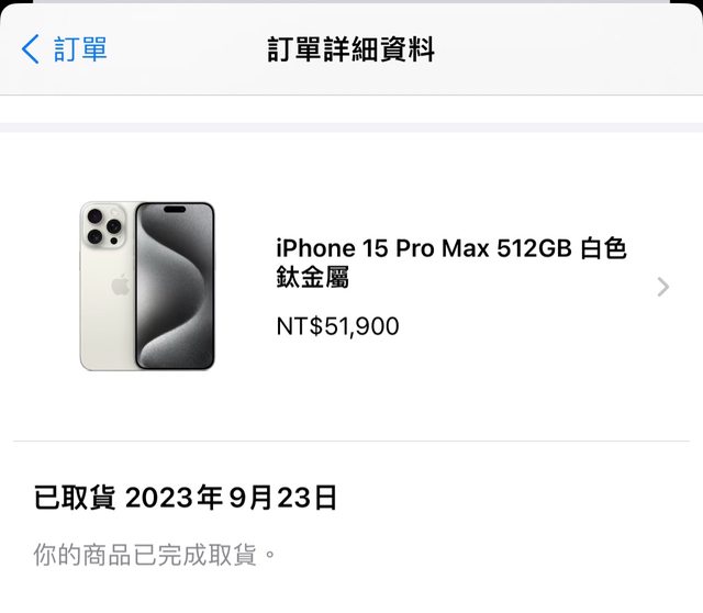 欲售物品:iPhone 15 Pro Max 512G 白色鈦金屬