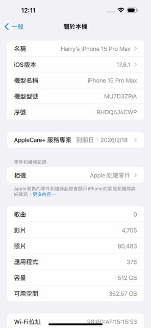 欲售物品:iPhone 15 Pro Max 512G 銀白色