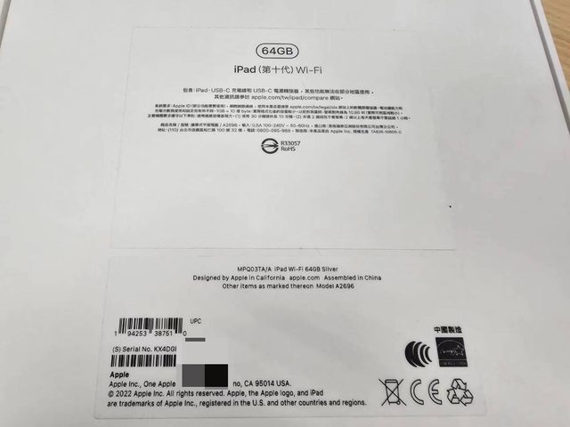 欲售物品:iPad 10.9吋 64G WiFi 銀色 2022年版