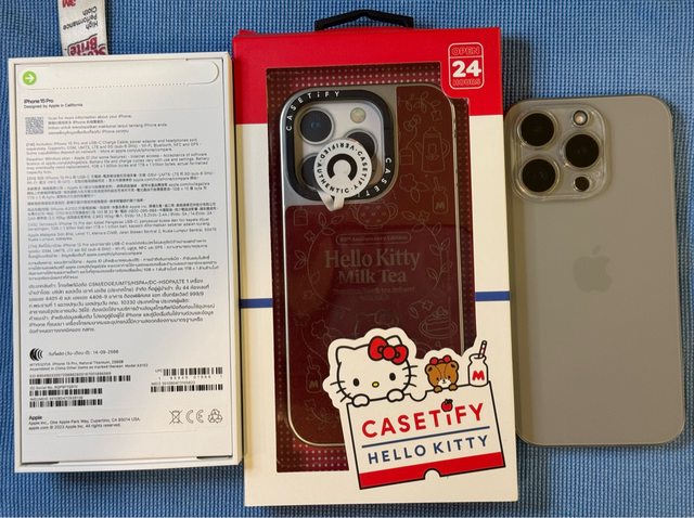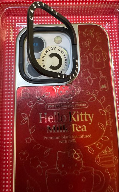 3. **手機保護殼**:CASETiFY x Hello Kitty 銀色鏡面保護殼,正常使用邊緣有些掉漆