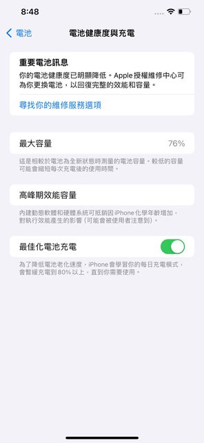 物品狀況:二手(正常使用痕跡)電池健康度76%