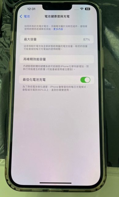 物品狀況:外觀良好,功能正常,螢幕有保護貼,無維修紀錄,無明顯刮痕,電池健康度87