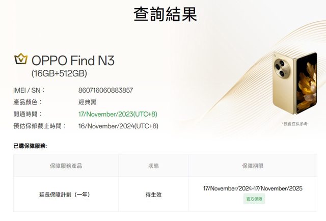 保固日期:2025/11/17,螢幕保險到2024/11/17