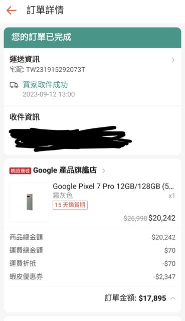 7p太大支,一直用不習慣,所以沒維修,已換回pixel 5,尋覓下一支小旗艦中。