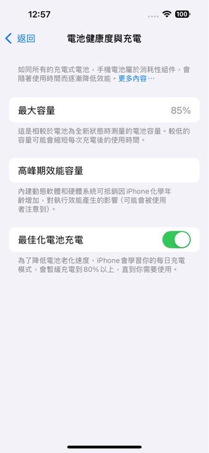 電池健康度:85%