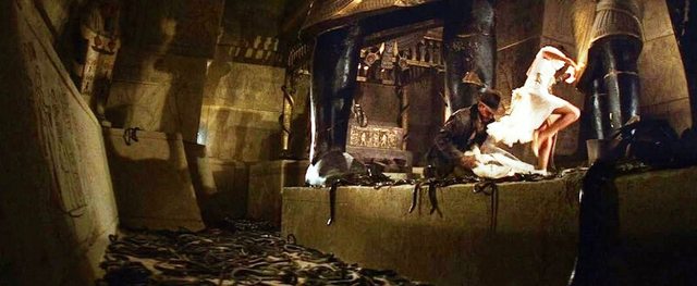 人一看就頭皮發麻的蛇蠍爬蟲場景,而且一言不合就是巨量出場。拍攝《法櫃奇兵》為求
