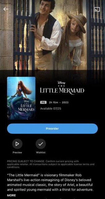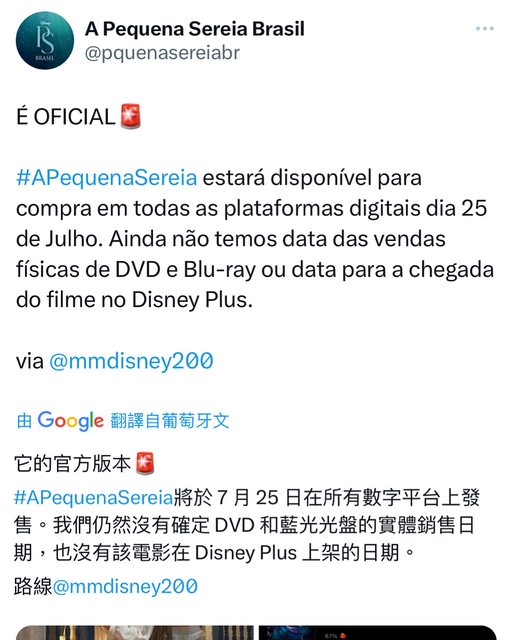 《小美人魚》將於7 月25 日在所有數字平台上發售。 我們仍然沒有確定 DVD 和藍光光盤的實體銷售日期,也沒有該電影在 Disney Plus 上架 的日期。 https://i.imgur.com/h0eX9dr.jpg