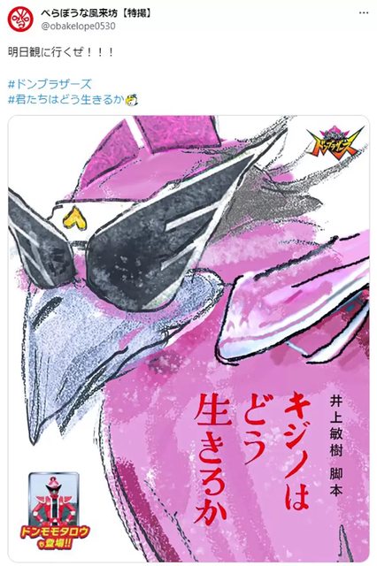 圖片來自:https://twitter.com/twit_kon/status/1679460675540889601 「雉野想活出怎樣的人生?(暴太郎戰隊Don Brothers)」 https://i.imgur.com/M9lZmIa.png