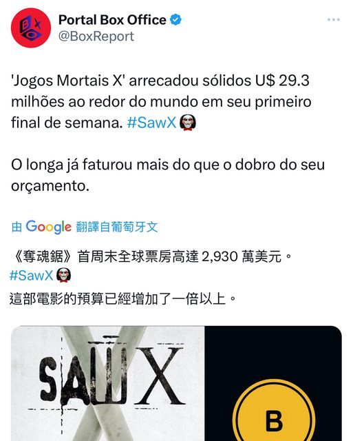 推 nanachi : 奪魂鋸這次全球應該能破億美元10/02 10:25