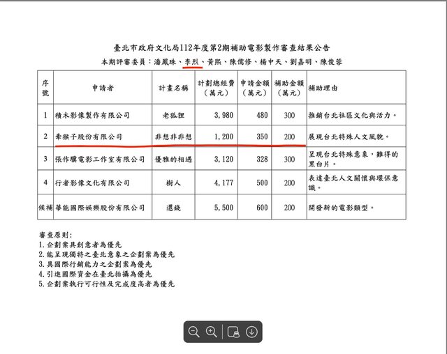 可也就是您做評審的同一次,你們的公司牽猴子卻拿到200萬的補助?