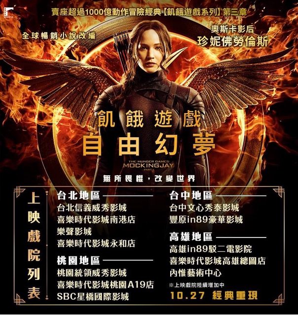 標題[情報] 《飢餓遊戲:自由幻夢》上映戲院列表