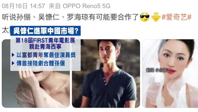 → william80730: 吳的演技蠻適合中國的 他的口條跟台劇很不搭 09/23 22:15