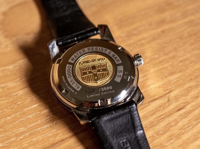 外觀上復刻程度極高,除了錶徑放大至38.1mm,更適合現代手錶主流與日常配戴,新增的日期窗也讓這隻正裝錶,實用性倍增。其餘的部分可以說是完整復刻,經典的寬劍指針、帶有巴黎釘紋的雙倍W型12點鐘時標、多角度切割、立體金屬Seiko Logo、草寫Seiko復古帶扣、刻字Seiko錶冠,最後蓋上兼具質感老味風格的廂型藍寶石鏡面;翻到背面重現當年18K金的盾牌金章,盾牌中央還刻有皇冠,象徵著精工之王的稱號,也有人說這枚皇冠就像是東方的勞力士一樣,總總細節都讓這枚KSK搭配鋒利的44KS錶殼,原汁原味重現當年精工之王的美。