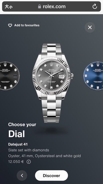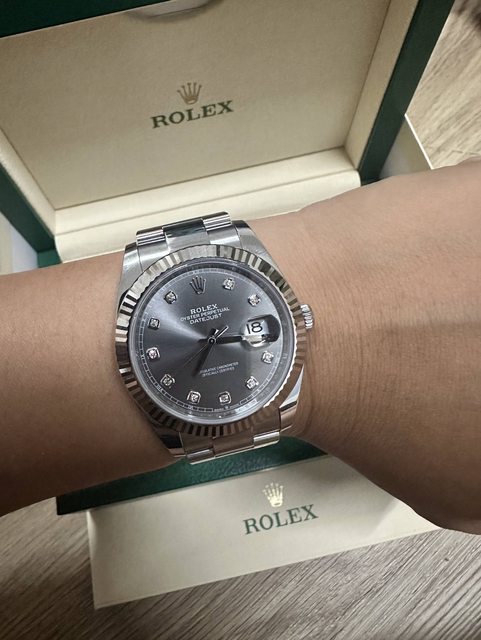 感覺沒有那麼喜歡 反正也一樣沒有錶可以賣 問了一下店員能不能給湯匙,他說需要Coupon 但給了我一支作紀念 第四站到了蘇黎世 這間沒啥好分享,人很多排隊進去一樣只供展示沒錶 但有看到三組歐洲人在選錶 問了店員他說他們是預約的,通知他們來拿錶 如果我今天想要手錶可以去樓上有其他牌子的可以買 上去繞了一圈,就是那些配錶 下來後問了是否有湯匙作紀念 拿了一支給我。 第五站到了德國慕尼黑 有先看一下GOOGLE評論,反正也是沒錶可買的狀態 這時我已經心死了,想說就去問問吧! 一進去是一位非洲店員接待 表明想要買一支錶,他問我想買什麼 我跟他說DateJust,他帶我到裡面那櫃 說有兩支,一支是女錶金色另一支是41灰色帶鑽太陽圈三版帶 我驚喜地問他,這是能賣的嗎? 他說是的,你要試嗎? 當然要!! 雖然帶鑽非我首選,但是其實本體超好看的 試帶後我就買了 人生第一支勞,原價勞,沒有配錶!!! https://i.imgur.com/Qes8Mf5.jpg