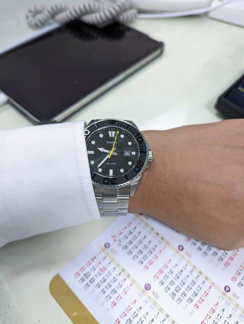 改黑色遊艇圈、藍寶石玻璃、閃電秒針、黃色內圈、三板帶+FKM膠帶,換下零件錶帶皆在,適合日常粗戴,錶帶正常使用痕跡