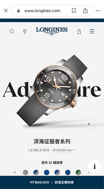 手錶型號:Longines 灰金膠帶潛水錶