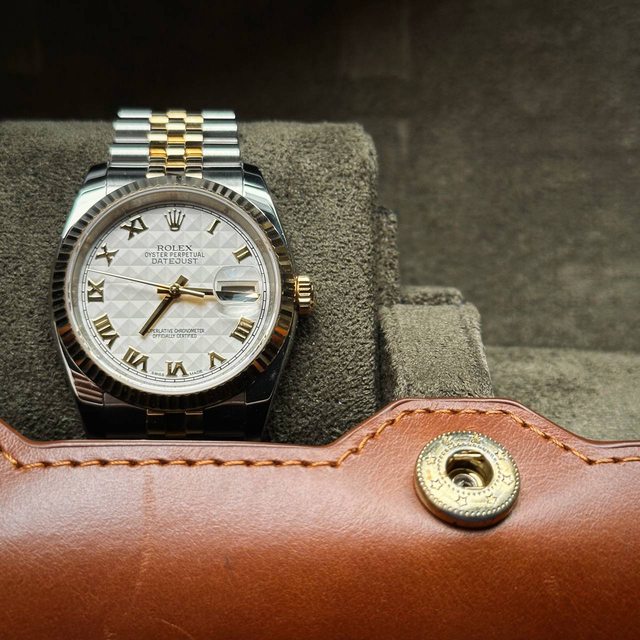 物件描述 :95新,正常使用痕跡,36mm半金datejust,金字塔面,錶節數目齊全無缺節