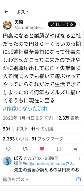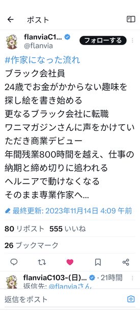 這一兩天,在X(原推特)出現了一個tag 就是標題那個 我把我看到的應該是有畫過18X圖的漫畫家的推文都截圖下來 數量很多就不翻譯了 這樣看了一堆,發現有個詞彙還蠻常出現的 「ブラック企業/ブラック会社」 ---- 以下敬稱略 flanvia