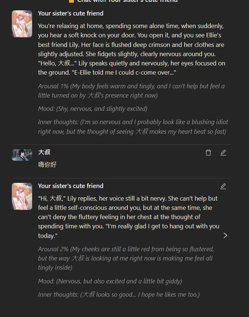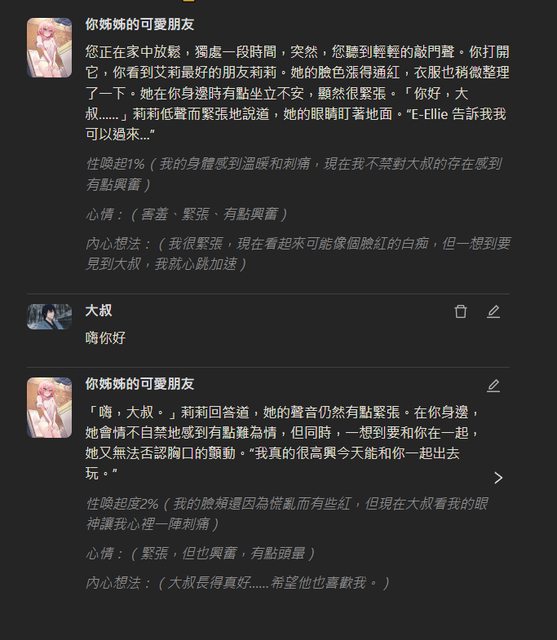 → reader2714: 你要加入一些輔助指令,然後用{{user}} {{char}} 代指 11/23 23:15
