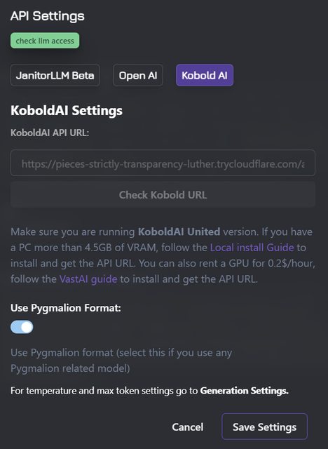 不過這個就好玩而已 顯卡夠力的可以玩玩看 一般選JanitorLLM或OpenAI就好了