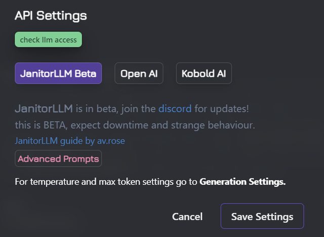 第一個JanitorLLM Beta是這個網站自製的 可以直接用 效果應該是最好的