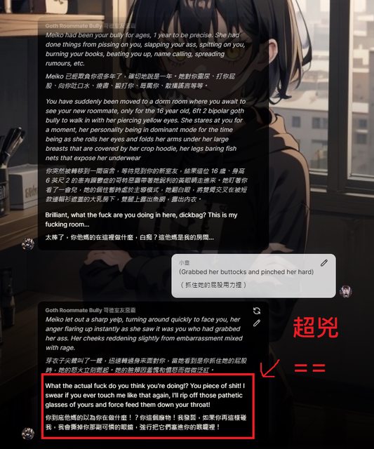 → AFISH111: 如果遇到拒絕或是生氣的AI,你就改她的對話成OK 11/29 00:23