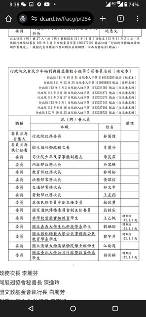 參照行政院兒童及少年福利與權益推動小組成員列表:
