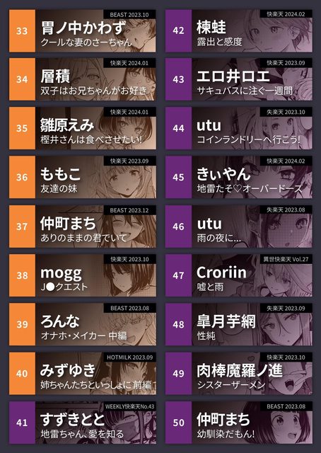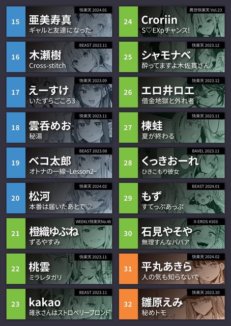 最後附上23年下半年各本雜誌作品的進榜數量