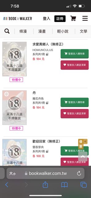 去該書頁面時則跟其他平台一樣同步有顯示(無修正)(也有無修正tag),所以