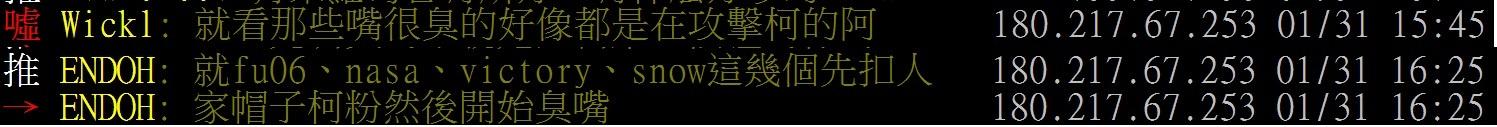 噓 Wickl: 就看那些嘴很臭的好像都是在攻擊柯的阿 180.217.67.253 01/31 15:45