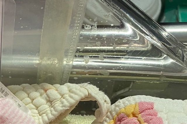 → catsup : 吃到胎便有呼吸窘迫情形,所以住院時有插管,兩頰 06/10 16:30