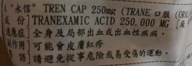推 rimadyl : 只是止血,也是美白用的傳明酸 06/14 18:09