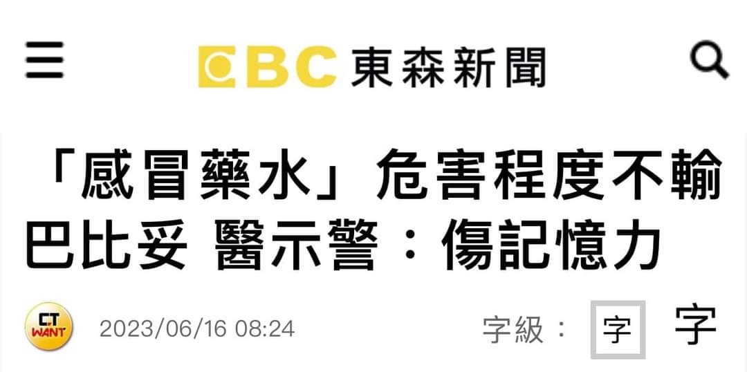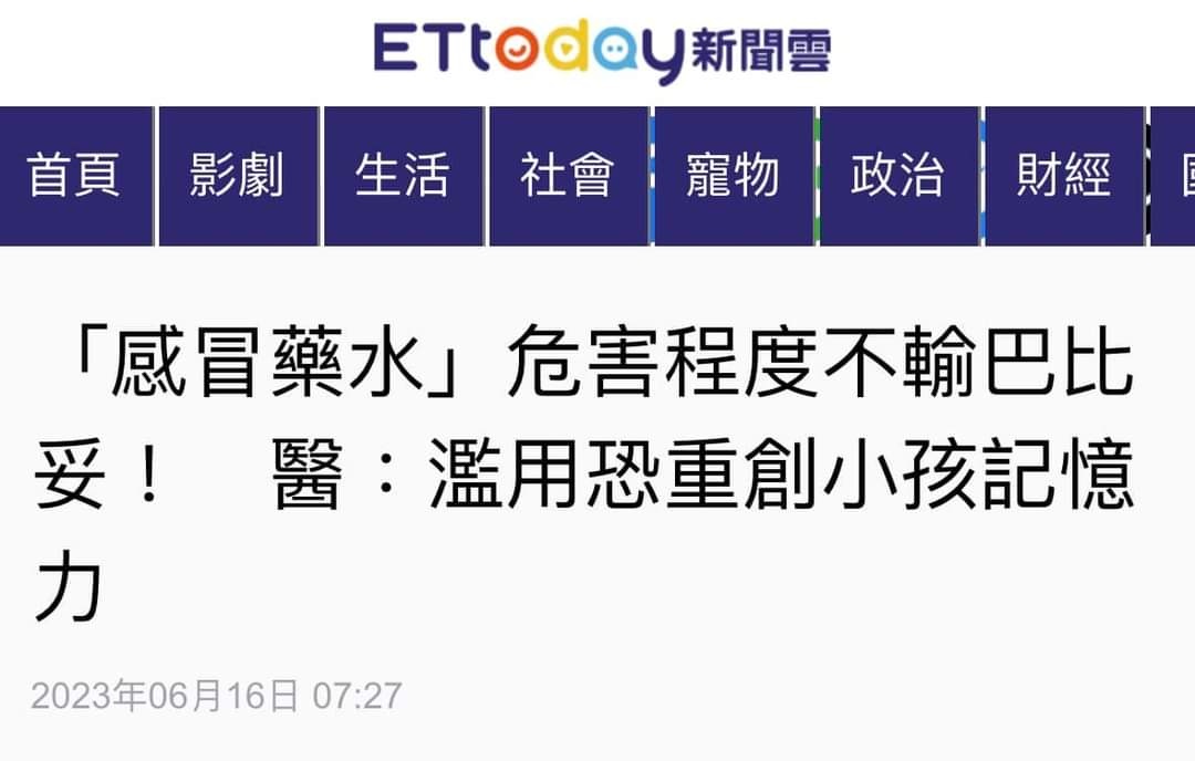 → tuiry : 一般兒童藥根本不會用到這麼強的藥品,不要混淆視聽 06/16 10:02