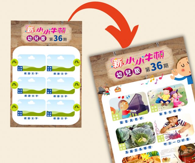 ▲新小小牛頓一期通常是6個單元至7個單元音檔,這裡提供6格和8格兩種版型,不需要的圖框可以點擊圖框刪除。