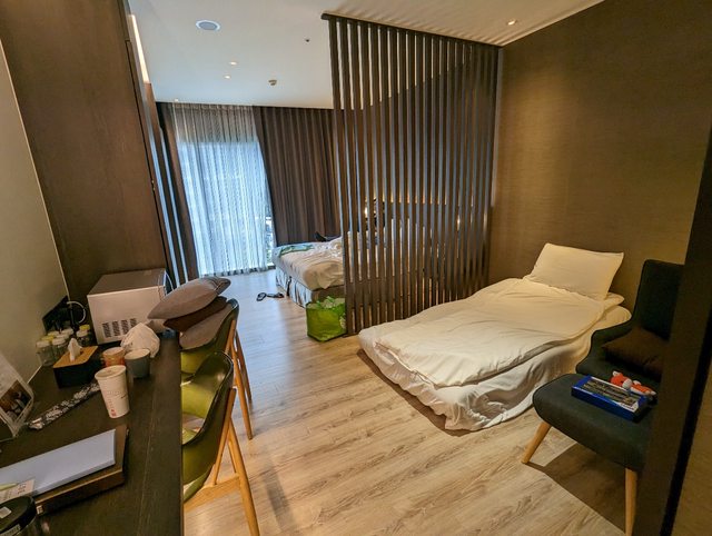 但實際入住之後覺得禾絹房寬敞很多,也因為有雙人床+單人床,沙發區就可以獨立扮演