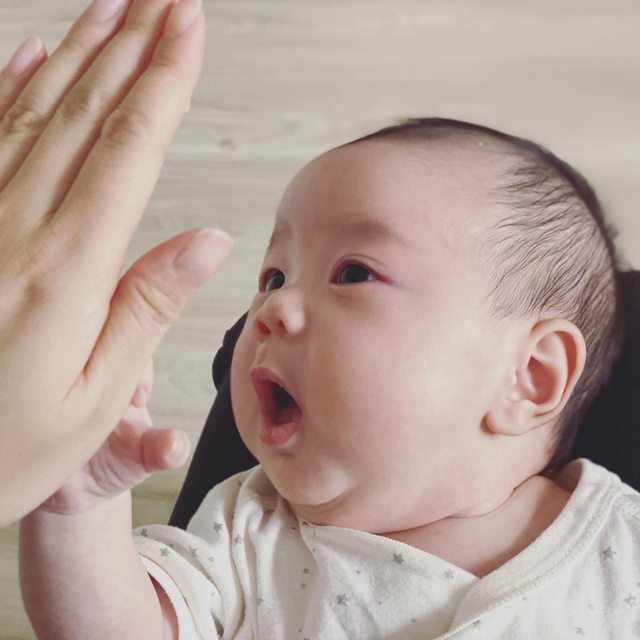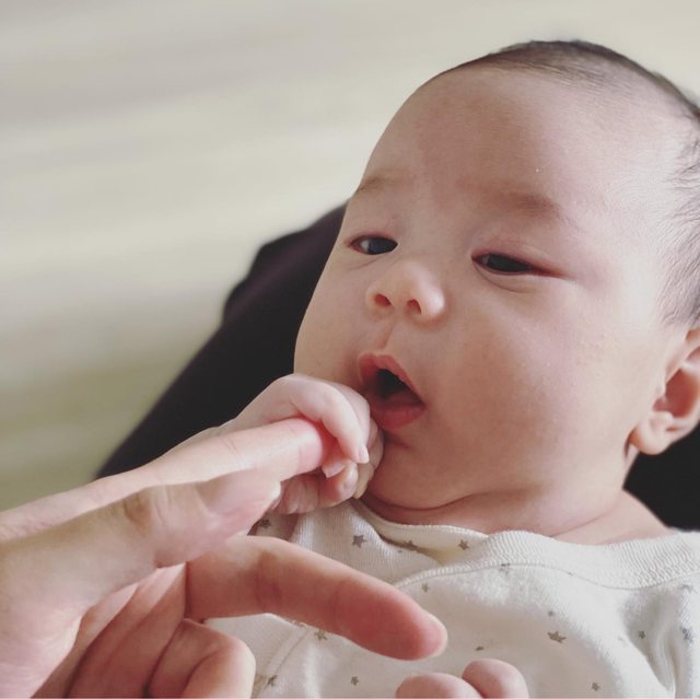 我不知道這是不是寶寶第一次想吃別人的手