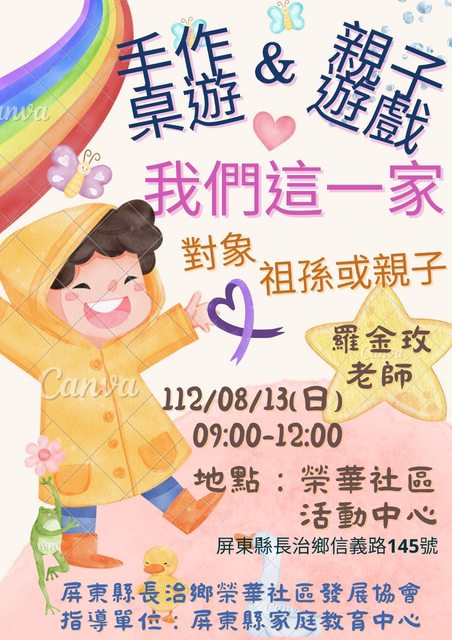 屏東縣榮華社區在112/8/13(日)辦理親子桌遊活動
