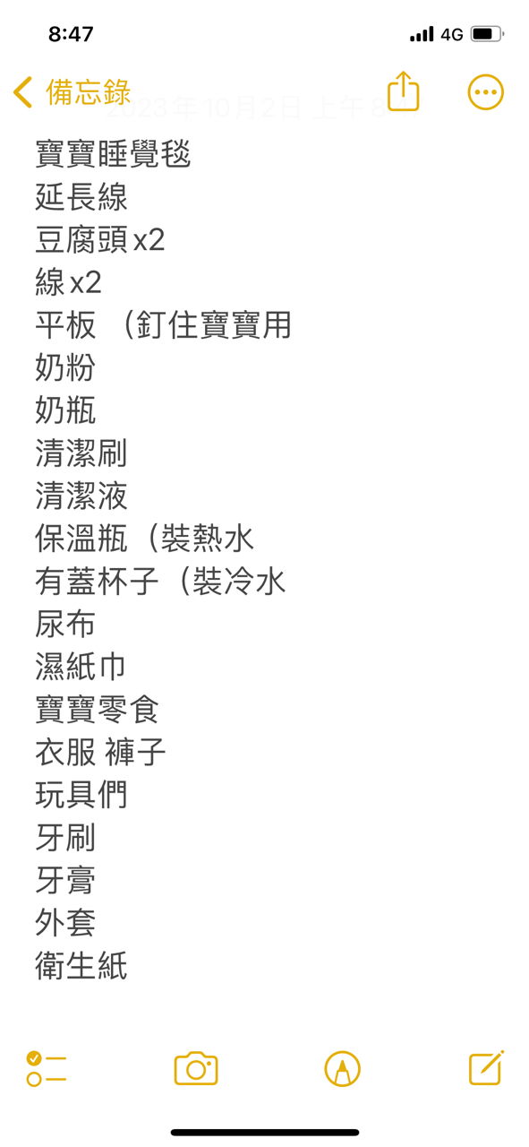 → yohappy : 奶粉也要記得帶,有次放車上大包包,沒想到在急診也 10/02 01:49