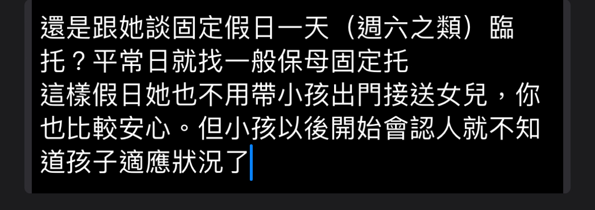 → PaeSon : 你們每個月或每週跟保姆討論送托日數, 10/04 16:23
