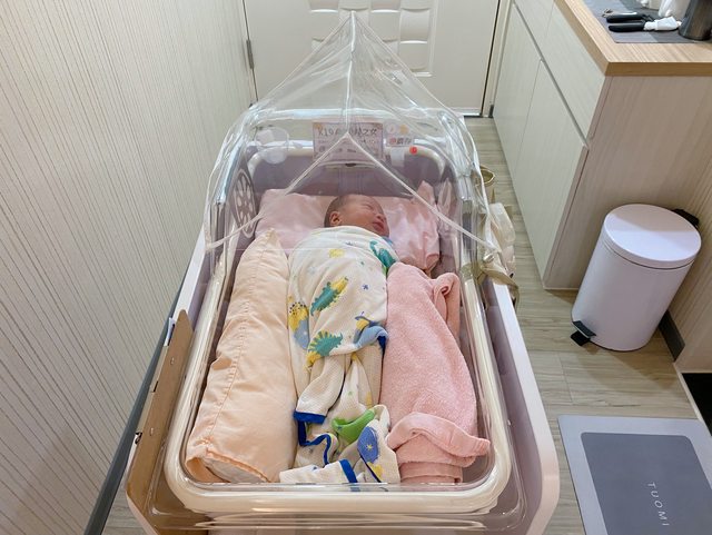 嬰兒室外面站著看不夠,回房間可以坐著繼續看唷