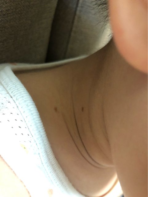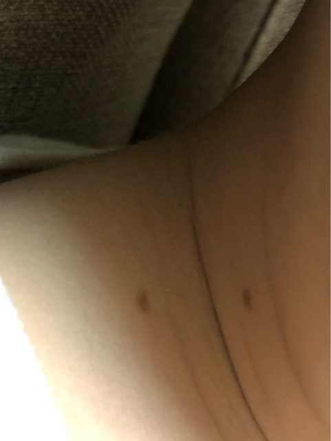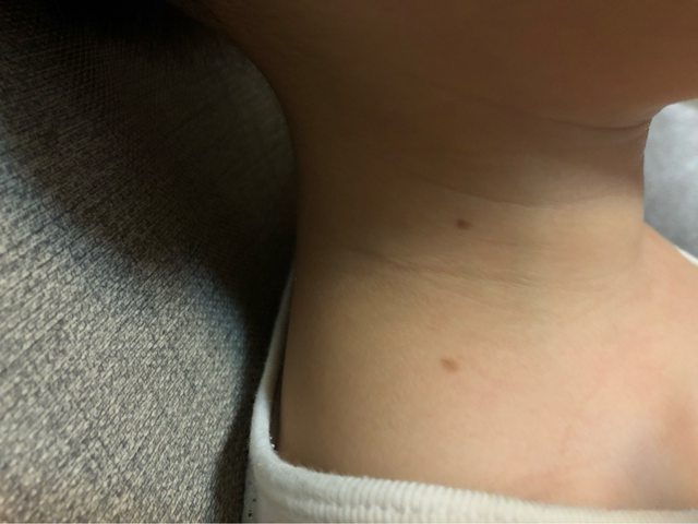 剛我幫他洗澡時突然發現頸部有褐色像痣的斑點兩顆,記得昨天洗澡沒看到,長得不像一
