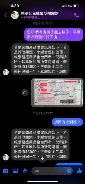 → c9103240529 : 到用不到一年壞掉需要維修的時候卻遇到這些狀況, 11/06 16:19