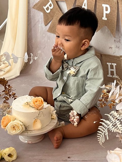 場景很美,兒子吃了好多蛋糕,