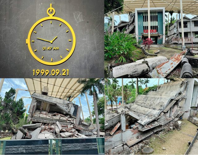 因921地震所造成的校舍倒榻和地表隆起所保留下來