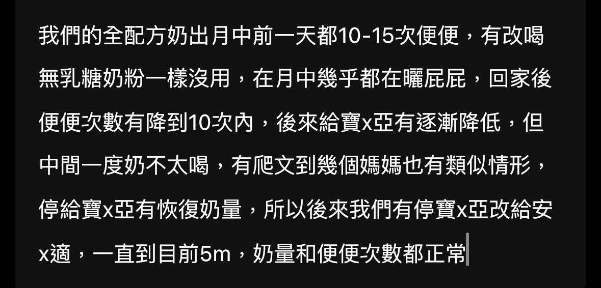 → pmamcz8546 : 啟賦水解混哺母乳脹氣問題才緩解,這罐很適合腸胃 07/09 09:50