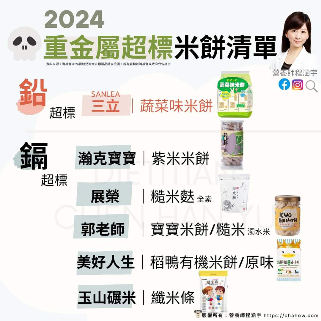 ※ 引述《Ninalove (娜娜)》之銘言: : 新聞標題:6件嬰幼兒米食「鉛鎘超標」吃多影響智力 違規名單一次看 : 記者許敏溶/台北報導 : 消基會為了解市售嬰幼兒米食商品重金屬含量,針對40件國產及進口商品進行抽驗,今( : 5日)公布結果。發現5件商品鎘含量超標,1件鉛含量超標。消基會表示,上述違規若未 : 在期限內改正,最高可處300萬罰鍰。另這次有17件商品驗出總砷含量超過新加坡標準, : 因國內目前無規範,消基會呼籲政府應儘速研擬標準。 : 消基會曾在2020年針對市售20件嬰幼兒可食米製品,進行鉛、鎘及總砷的含量調查檢測, : 結果有4件樣品,鎘檢出量超過政府規定標準。為了解後續狀況,消基會在今年2月期間, : 在雙北採的母嬰、嬰童用品專賣店、藥局、網路購物平台等販售通路買40件國產及進口樣 : 品,進行重金屬鉛、鎘、砷及汞的含量調查檢測。 : 消基會董事長吳榮達表示,40件商品中,國產樣品有28件,類別涵蓋粥、燉飯、炊飯、米 : 精、米糊、米泥、米餅、米條、米菓、米棒;進口樣品則有12件,類別則有米餅、米棒、 : 米圈圈、米泥、粥及雞肉泥。 : 40件商品中,共有5件商品鎘含量超標,包括展榮食品的「糙米麩」、郭老師的「寶寶米 : 餅-糙米」、美好人生的「稻鴨有機米餅」、玉山碾米的「纖米條」、瀚克寶寶的「紫米 : 米餅」;含鉛超標則是慧鴻貿易的「三立蔬菜味米餅」;另外舒果農企業的「小寶-玉米 : 糊(粥寶寶)」則未標示產地。 : 吳榮達表示,上述鉛及鎘檢出量超標,依照《食安法》規定,主管機關可命廠商限期改正 : ,屆期不改正者,可處3萬元以上300萬元以下罰鍰;情節重大者,並得命其歇業、停業一 : 定期間或廢止其公司登記。 : 此外,這次40件商品中,共有17件商品驗出總砷含量超過新加坡標準,吳榮達指出,砷分 : 為有機砷和無機砷,有機砷毒性較低,大多存在於海產類食物,但長期攝取過量的無機砷 : ,會累積在人體的肝、腎及膽等器官中,引起慢性砷中毒,但國內目前並沒有針對砷含量 : 進行規範,呼籲政府應儘速研擬標準。 : 原文網址: https://www.ettoday.net/news/20240705/2771456.htm#ixzz8f5ZXktDk : 看法/心得: : 超多知名品牌都中標,郭老師、稻鴨、瀚克寶寶 : 給小孩吃的東西居然鉛鎘超標,到底現在能安全給小孩吃的東西有哪些? 我家今年開始常買給寶寶吃的是玉山碾米廠的纖米條 看到新聞第一時間真的嚇到 嘗試掃包裝上的 Line 問但都沒回應 今天早上直接打電話去問 接電話的小姐還算客氣跟態度OK...一直跟我道歉 目前看來是有放最近一批固定送驗的報告在官網/FB上 聽了比較稍微沒那麼擔心...但退貨感覺還是很麻煩 希望是複驗後都沒事,不然家裡還好幾包庫存 看抽驗的劑量,可能家裡大人自己消化掉 大概會先觀望一陣子吧,最近大概都不敢買這種米製品了 參考資訊 (臉書) https://www.facebook.com/EsunRice https://i.imgur.com/BBeKISJ.jpeg