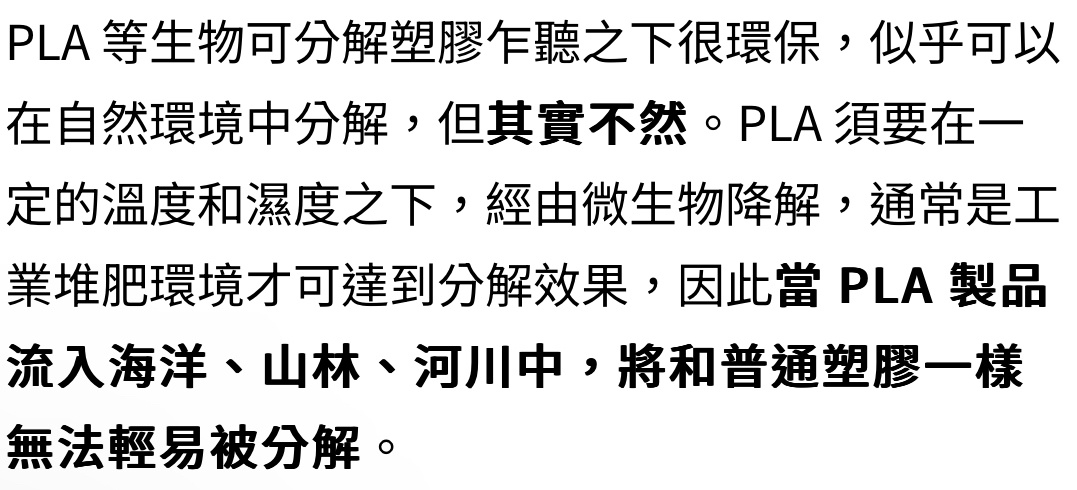AndyPettitte: PLA就玉米澱粉做的聚乳酸,分子量低、強度低,很弱 07/13 19:15
