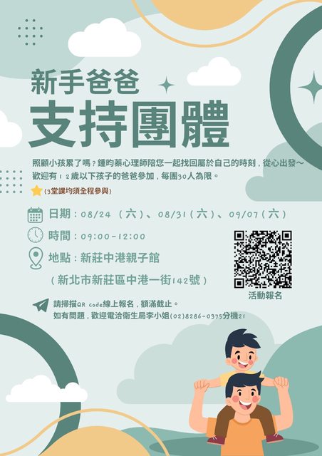 標題[好康] 113年新北市政府衛生局 新手爸爸支持團